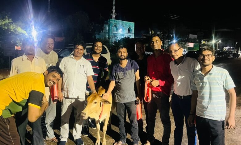 बसना :मारवाड़ी युवा मंच ने गौमाता को पहनाई रेडियम पट्टी