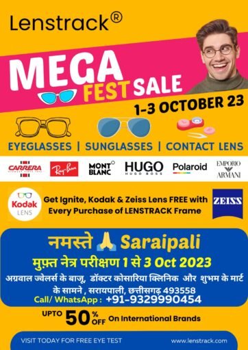 सरायपाली. अंचल के लोगों के लिए शानदार मौका हिंद आई केयर लेंसट्रैक आंखों के क्लीनिक सरायपाली में पहली बार फ्री आखों की जांच साथ ही EYEGLASSES