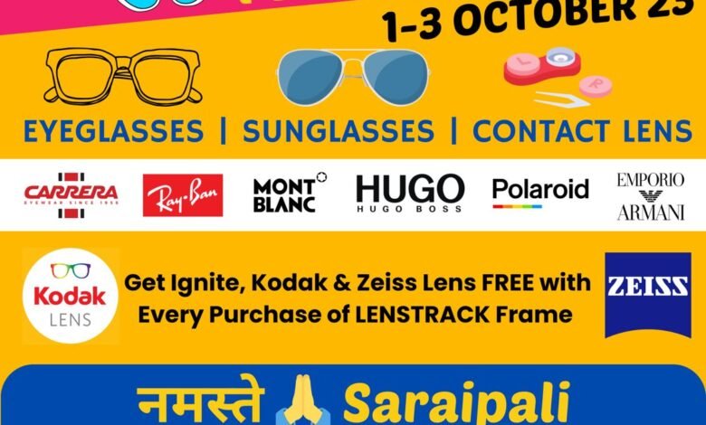 सरायपाली: फ्री….फ्री …फ्री…हिद आई केयर में आंखों की जांच 1 अक्टूबर से 3 तक