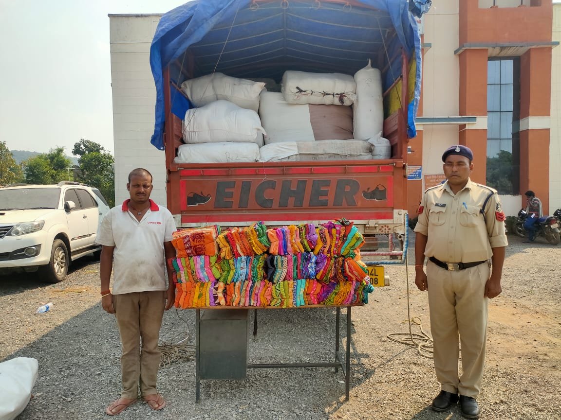 सरायपाली: आयसर ट्रक से भारी मात्रा में साड़ियों का परिवहन करते युवक को पुलिस ने दबोचा