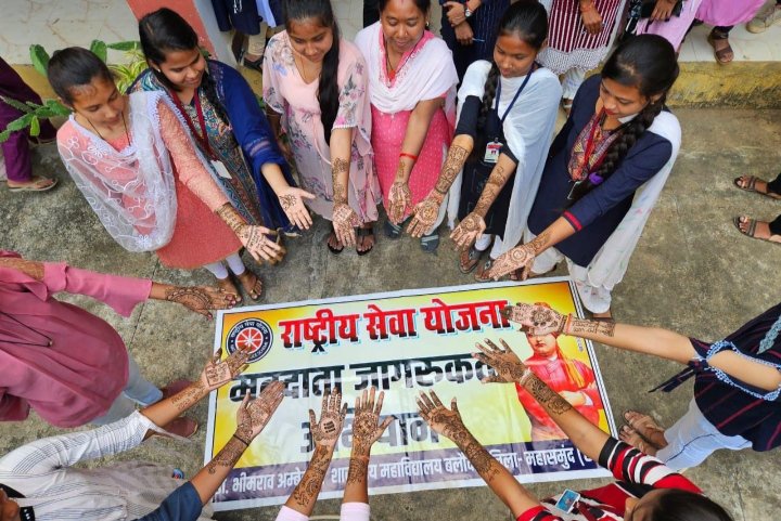 सरायपाली: बलौदा कॉलेज में मेंहदी व मानवश्रृंखला के द्वारा मतदाता जागरूकता