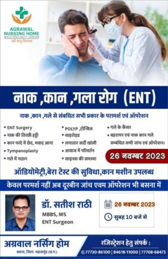 अग्रवाल नर्सिंग होम में 26 नवंबर को उपलब्ध रहेगे नाक कान गला रोग विशेषज्ञ डाक्टर सतीश राठी