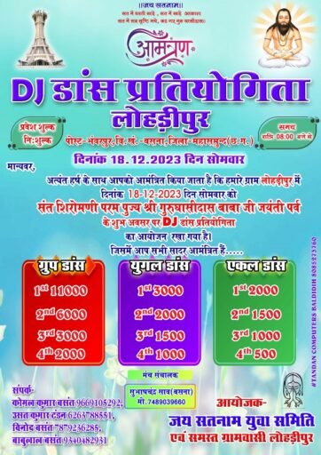 बसना: डीजे डांस प्रतियोगिता 18 को