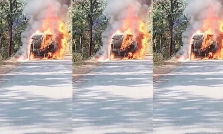 चलते ट्रक में टायर फटने के बाद भीषण आग लग गई. जिसके बाद ड्राइवर और हेल्पर ने गाड़ी से कूदकर अपनी जान बचाई. आग लगने का कारण टायर फटना बताया जा रहा है. सुकमा जिला के पकेला के पास NH 30 में ये घटना हुई है.