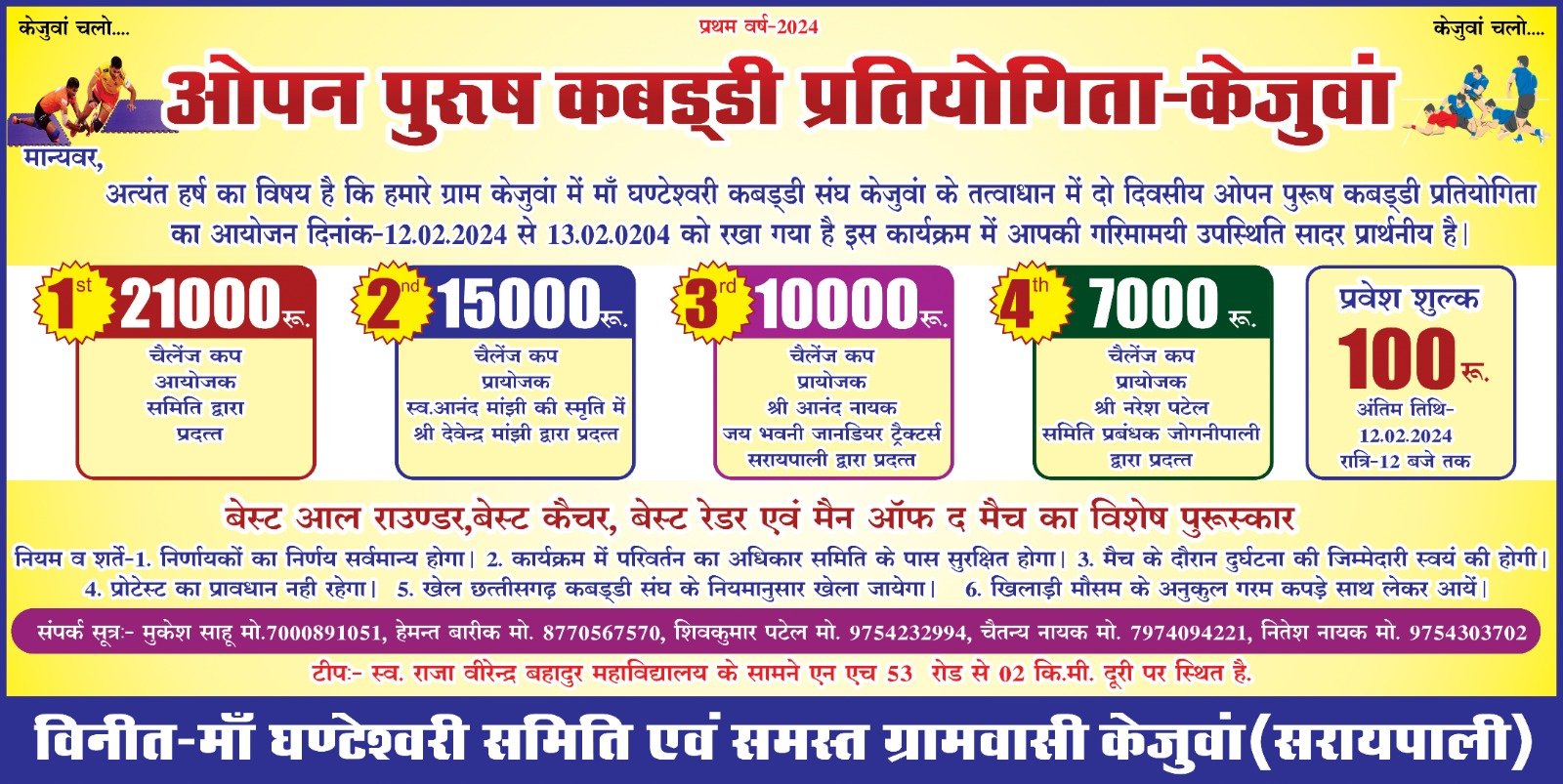 Home/सरायपाली/सरायपाली: कबड्डी प्रतियोगिता 12 से सरायपाली सरायपाली: कबड्डी प्रतियोगिता 12 से काका खबरीलालJanuary 28, 2024 1,247 Less than a minute Related Articles सरायपाली: यहां…..आधार अपडेट शिविर का आयोजन जानिए पुरी डिटेल्स January 18, 2026 AD#1 काका खबरीलालJanuary 28, 2024 1,247 Less than a minute Facebook Twitter WhatsApp Telegram Print