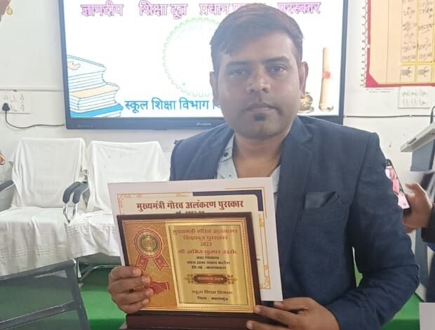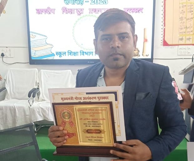 महासमुंद( काकाखबरीलाल).अमित कुमार उइके जो कि बागबाहरा विकासखंड के शासकीय प्राथमिक शाला बटोरा में सहायक शिक्षक के रूप में पदस्थ है। जिनके द्वारा विद्यालय में नित नए नवाचार किये जा रहे हैं। जिससे बच्चों में लगातार बौद्धिक क्षमता का विकास हो रहा है। सामुदायिक सहभागिता में माताओं को विद्यालय से जोड़ने का कार्य किया गया। जिससे बच्चों की उपस्थिति में वृद्धि हुई।विद्यार्थियों के लिए TLM आधारित शिक्षा,लर्निंग कार्नर,मुस्कान पुस्तकालय,मैथ्स कार्नर, साइंस कार्नर और मेरा wall मेरी पहचान बनाया गया। जिसमे बच्चे रेगुलर कुछ नया सीखने के लिए आतुर रहते हैं। समय-समय पर आयोजित होने वाले कार्यक्रमों में इनकी सहभागिता रहती है।विद्यालय को प्रिंट रिच पेंटिंग कराया गया है।इनके द्वारा किए जा रहे अथक प्रयासो से सरपंच सिन्हा जी के द्वारा विद्यालय में टाइल्स लगाया गया है।इनका उद्देश्य ग्रामीण क्षेत्र के बच्चों को प्राइवेट स्कूल स्तर की शिक्षा और सुविधा देना है। जिससे बच्चे आगे आकर अपने सपनो को पूरा कर सके। उइके के प्रयासों और नवाचारी गतिविधियो को देखते हुए शिक्षा विभाग के द्वारा मुख्यमंत्री गौरव अलंकरण शिक्षा दूत पुरस्कार से सम्मानित किया गया।
