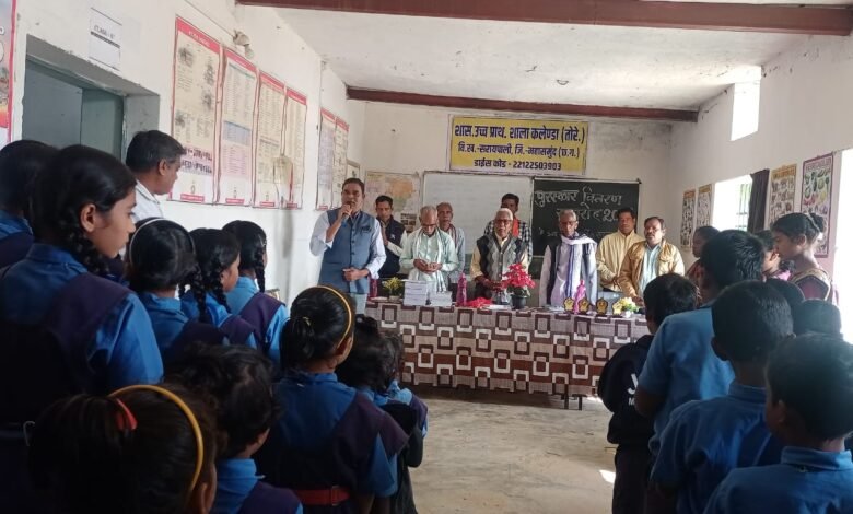 सरायपाली–शासकीय उच्च प्राथमिक शाला एवं प्राथमिक शाला कलेण्डा(तोरेसिंहा) विद्यालय परिवार द्वारा विद्यार्थियों को पुरस्कार वितरण सह सम्मान समारोह का आयोजन किया गया। कार्यक्रम का शुभारंभ अतिथियों द्वारा मां सरस्वती,भारत माता, छत्तीसगढ़ महतारी के तैलचित्र पर पूजा- वंदना,दीप प्रज्जवलित कर किया गया। तत्पश्चात विद्यालय की छात्रा कुमारी धरित्री प्रधान द्वारा सरस्वती वंदना किया गया । समस्त अतिथियों का स्वागत विद्यालय की छात्रा प्रतिनिधि योगिता एवं श्रद्धा द्वारा गुलाल-तिलक कर किया गया।छात्रा सुषमा,धरित्री, कुसुम द्वारा स्वागत नृत्य किया गया।कार्यक्रम में छात्र-छात्राओं द्वारा विभिन्न सांस्कृतिक प्रस्तुतियां दी गई। पुरस्कार वितरण कार्यक्रम के अंतर्गत कक्षा पहली से आठवीं तक विगत वर्ष प्रथम एवं द्वितीय स्थान प्राप्त, सांस्कृतिक गतिविधियों में उत्कृष्ट प्रदर्शन करने वाले, विगत वर्ष राष्ट्रीय ग्रामीण प्रतिभावान छात्रवृत्ति हेतु चयनित तीन विद्यार्थी, नवोदय में चयनित दो विद्यार्थियों, विद्यालय के अनुशासन एवं बाल कैबिनेट में उत्कृष्ट कार्य करने वाले विद्यार्थी,स्काउट गाईड