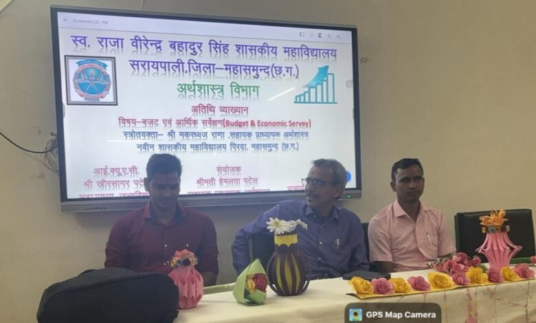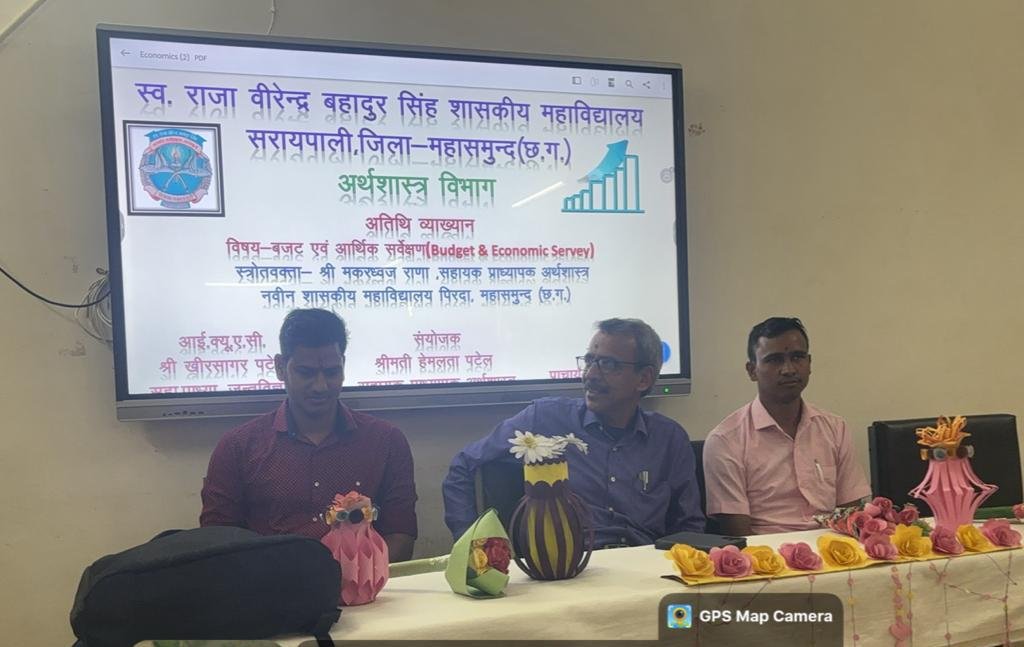 सरायपाली: स्वर्गीय राजा वीरेंद्र बहादुर सिंह शासकीय महाविद्यालय सराईपाली में प्राचार्य श्री पी के भोई के मार्गदर्शन एवं अर्थशास्त्र विभाग द्वारा बजट एवं आर्थिक सर्वेक्षण विषय पर एक दिवसीय अतिथि व्याख्यान का आयोजन किया ,जिसमे मुख्य अतिथि श्री मकरध्वज राणा ,सहायक प्राध्यापक अर्थशास्त्र शासकीय नवीन महाविद्यालय पिरदा थे ।कार्यक्रम की अध्यक्षता महाविद्यालय के प्राचार्य श्री पी के भोई द्वारा की गयी।बजट क्या है आम जनता के लिए इसके क्या मायने है इसकी शुरूआत कब हुई इसके कितने प्रकार होते है इसे कैसे पेश किया जाता है तथा आम जनता को इसके बारे मे जानना क्यों आवश्यक है इसके बारे मे स्त्रोतवक्ता श्री मकरध्वज राणा सहायक प्राध्यापक अर्थशास्त्र शासकीय नवीन महाविद्यालय पिरदा द्वारा विस्तार से बताया गया ।पिछले दिनों महाविद्यालय मे विकसित भारत@2047 युवाओं की आवाज़ के नोडल अधिकारी श्रीमती हेमलता पटेल के मार्गदर्शन में विकसित भारत के तहत महाविद्यालय मे कई प्रतियोगिता जैसे अल्पना,निबंध,भाषण,वादविवाद,एकांकी,नाटक,क्वीज़,व्याख्यान,नारा लेखन,रंगोली जैसे अनेक प्रतियोगिता का आयोजन किया गया था जिनमे से प्रथम द्वितीय व तृतीय स्थान प्राप्त करने वाले विद्यार्थिओ को उत्साहवर्धन के लिए महाविद्यालय के प्राचार्य श्री पी के भोई व छात्र संघ अध्यक्ष डॉ संध्या भोई के द्वारा विद्यार्थियों को प्रमाण पत्र व उपहार देकर पुरस्कृत किया गया ।इस कार्यक्रम मे महाविद्यालय के अन्य प्राध्यापकों सहित बड़ी संख्या मे छात्र छात्राएं उपस्थित रहे।