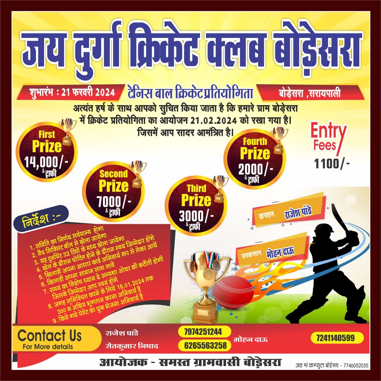 Home/सरायपाली/सरायपाली: जय दुर्गा क्रिकेट क्लब द्वारा क्रिकेट प्रतियोगिता का आयोजन सरायपाली सरायपाली: जय दुर्गा क्रिकेट क्लब द्वारा क्रिकेट प्रतियोगिता का आयोजन काका खबरीलालFebruary 22, 2024 1,230 Less than a minute Related Articles सरायपाली: तिरंगा क्रिकेट क्लब द्वारा क्रिकेट प्रतियोगिता 21 से जानिए डिटेल्स January 17, 2026 AD#1 Tagsसरायपाली: जय दुर्गा क्रिकेट क्लब द्वारा काका खबरीलालFebruary 22, 2024 1,230 Less than a minute Facebook Twitter WhatsApp Telegram Print