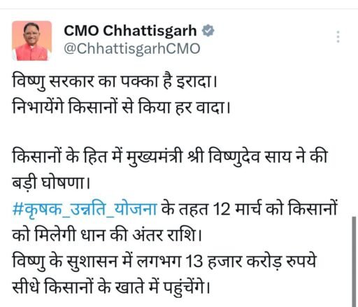 विष्णु के सुशासन में लगभग 13 हजार करोड़ रुपये सीधे किसानों के खाते में पहुंचेंगे।
