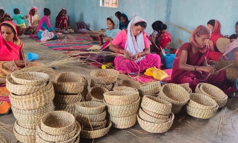 कोटानपानी ग्राम के प्रत्येक घर में तैयार हो रही है छिंद-कांसा की आकर्षक टोकनी एवं अन्य वस्तुएं