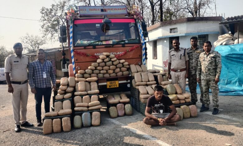 सरायपाली (काकाखबरीलाल).पुलिस अधीक्षक महोदय महासमुंद एवं अतिरिक्त पुलिस अधीक्षक द्वारा समस्त थाना चौकी प्रभारियो को आगामी लोकसभा चुनाव के मद्देनजर जिले मे अवैध गांजा के परिवहन पर प्रभावी कार्यवाही करने हेतु निर्देशित किया गया था जिस पर श्रीमान अनुविभागीय अधिकारी पुलिस सरायपाली के मार्गदर्शन मे थाना सिंघोडा एवं सायबर सेल के संयुक्त टीम द्वारा दिनांक 08/03/2024 को मुखबीर सूचना पर उडिसा से छत्तीसगढ की ओर आ रही एक गेरूआ कलर की अशोक लिलेण्ड ट्रक क्रमांक OD15 W 7771 को रोका गया, वाहन मे एक व्यक्ति सवार था पूछताछ करने पर गोल मोल जवाब देने लगा कडाई से पूछताछ करने पर वाहन के डाला मे कैरेट के नीचे गांजा रखकर उडिसा से महाराष्ट्र ले जाना बताया नाम पता पूछने पर अपना नाम शेषदेव नायक पिता हरा नायक उम्र 23 साल साकिन बरोडामलिहा थाना किशोर नगर जिला अंगुल (उडिसा) बताया , वाहन की तलासी लेने पर वाहन के डाला मे कैरेट के नीचे 150 किलोग्राम मादक पदार्थ गांजा मिलने पर आरोपी के विरूद्ध थाना सिंघोडा मे एनडीपीएस एक्ट के प्रावधानो के तहत विधिवत कार्यवाही कर आरोपी से 150 किलोग्राम अवैध मादक पदार्थ गांजा जप्त किया गया है।