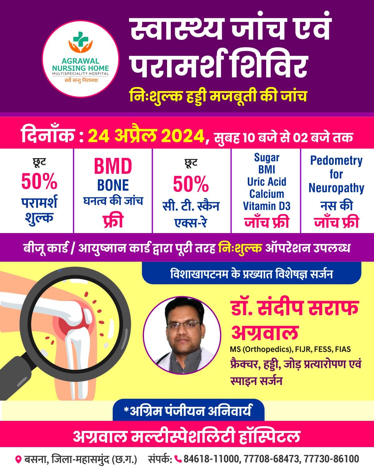 Home/छत्तीसगढ़/अग्रवाल नर्सिंग होम में 24 को स्वास्थ्य जांच व परामर्श शिविर का आयोजन छत्तीसगढ़ अग्रवाल नर्सिंग होम में 24 को स्वास्थ्य जांच व परामर्श शिविर का आयोजन काका खबरीलालApril 21, 2024 1,109 Less than a minute Related Articles शुभा नर्सिंग होम में 12 अप्रैल को उपलब्ध रहेंगे हड्डी जोड़ प्रत्यारोपण स्पेशलिस्ट डॉक्टर आकाश पंडा March 30, 2026 AD#1 Tagsअग्रवाल नर्सिंग होम में 24 को स्वास्थ्य जांच काका खबरीलालApril 21, 2024 1,109 Less than a minute Facebook Twitter WhatsApp Telegram Print