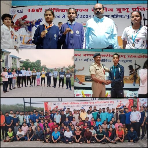 छत्तीसगढ़ शासन खेल एवं युवा कल्याण विभाग तथा वुशू एसोसिएशन के तत्वावधान में राजनांदगांव जिले के डोंगरगढ़ में 9 मई से 12 मई को आयोजित चैंपियनशिप में 9 खिलाड़ियों को चयनित कर देहरादून (उत्तराखंड) नेशनल वुशू चैंपियनशिप के लिए किया गया है। छत्तीसगढ़ वूशु एसोसिएशन के (जनरल सेक्रेटरी) डी. कोंडईया , कमल किशोर धीवर,भरत कुमार (टेक्निकल डायरेक्टर) , मनोज ठाकुर ( ताऊलु कोच) ने हर्ष व्यक्त कर सभी खिलाड़ियों को उनके उज्जवल भविष्य की कामना करते हुए आशीर्वाद प्रदान किया। वूशु एसोसिएशन के प्रमुख निर्देशक *खिलेश बरिहा एवं हेमराज साहू* के नेतृत्व में बच्चे खेलने गए थे।