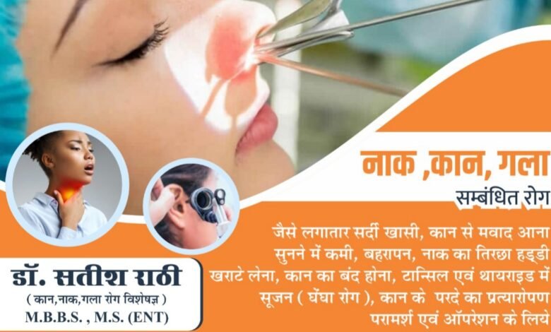 आज अग्रवाल नर्सिंग होम बसना में उपलब्ध रहेंगे प्रसिद्ध नाक कान व गला रोग विशेषज्ञ डॉक्टर सतीश राठी