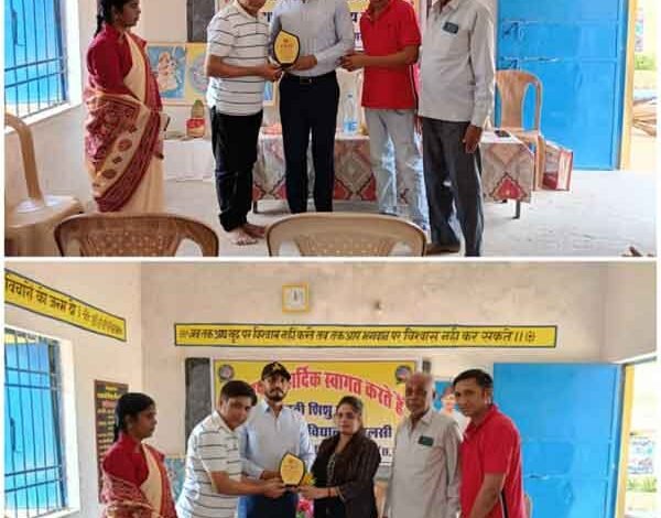 सर्वप्रथम मां सरस्वती , प्रणवाक्षर ओम् तथा भारत माता के छायाचित्र के समक्ष दीप प्रज्जवलित कर कार्य का शुभारंभ किया गया । श्रीअग्रशिरोमणि संस्था के मनोज अग्रवाल, लक्ष्मी नारायण अग्रवाल , विद्यालय के अध्यक्ष ललित साहू द्वारा धर्मेंद्र चौधरी व पूजा साहू का श्रीफल , गमछा एवं मोमेंटो प्रदान कर सम्मान किया गया ।