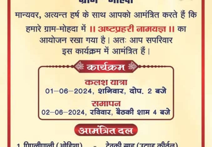 Home/सरायपाली/सरायपाली: मोहदा में अष्टप्रहरी नामयज्ञ आज से सरायपाली सरायपाली: मोहदा में अष्टप्रहरी नामयज्ञ आज से छत्तरसिंग पटेलJune 1, 2024 1,540 Less than a minute Related Articles छूईहा (छूईपाली) में सजेगी नृत्य की महफिल: भव्य डी.जे. डांस प्रतियोगिता का होगा आयोजन, ठाकुरदेव विवाह महोत्सव के उपलक्ष्य में 7 मार्च को बिखरेगा कला का जादू March 6, 2026 AD#1 Tagsसरायपाली: मोहदा में अष्टप्रहरी नामयज्ञ आज से छत्तरसिंग पटेलJune 1, 2024 1,540 Less than a minute Facebook Twitter WhatsApp Telegram Print