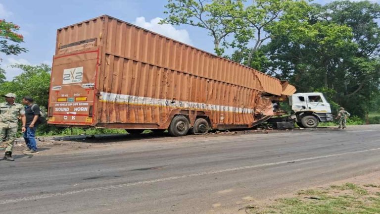 कंटेनर और कोयले से भरी ट्रक में भिड़ंत