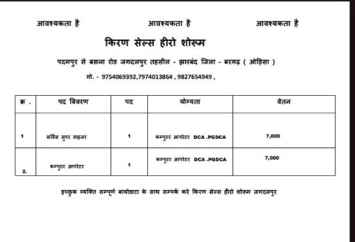 Home/छत्तीसगढ़/जाॅब: आवश्यकता है सर्विस सुपरवाइजर कम्प्यूटर आपरेटर की छत्तीसगढ़ जाॅब: आवश्यकता है सर्विस सुपरवाइजर कम्प्यूटर आपरेटर की काका खबरीलालJune 16, 2024 3,155 Less than a minute Related Articles मुख्यमंत्री अनुसूचित जाति एवं जनजाति विद्यार्थी उत्कर्ष योजना : रुचि की अभिव्यक्ति हेतु आवेदन 23 अप्रैल तक आमंत्रित April 15, 2026 AD#1 Tagsजाॅब: आवश्यकता है सर्विस सुपरवाइजर कम्प्यूटर आपरेटर की काका खबरीलालJune 16, 2024 3,155 Less than a minute Facebook Twitter WhatsApp Telegram Print