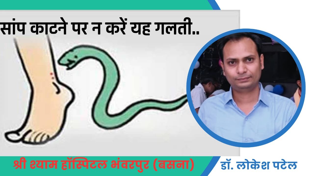 स्वास्थ्य सेवाएं @ भंवरपुर। सांप का काटना एक ऐसी दुर्घटना है अगर इसका तुरंत इलाज नहीं किया जाए तो उससे जान भी जा सकती है। सांप काटने पर सबसे जरूरी है कि उसके लक्षणों की पहचान की जाए और उसका तुरंत उपचार किया जाए। आज आपको श्री श्याम हॉस्पिटल भंवरपुर के चेयरमैन डॉ लोकेश पटेल आपको बताएंगे कि यदि किसी को सांप काट ले तो क्या काम तुरंत करने चाहिए और किन गलतियों को करने से बचना चाहिए।