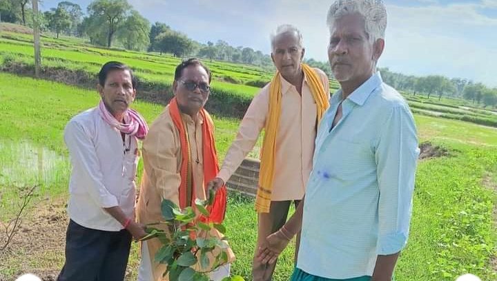 सरायपाली( काकाखबरीलाल). एक पेड़ मां के नाम अभियान के तहत हरियाली त्योहार के शुभ अवसर पर ग्राम पंचायत मोहदा के पंचायत भवन, बड़े तालाब में बेल, जामुन, सीताफल, कनेर, कटहल, अनेक प्रजाति के पौध रोपण किया गया। पूर्वजों के स्वर्गारोहण स्थल में पीपल पेड़ लगा कर पूर्वजों को याद किया प्रणाम किया गया। इस अवसर पर राजेन्द्र नायक प्रदेश उपाध्यक्ष पिछड़ा वर्ग मोर्चा भाजपा ग्राम के सरपंच गंगा राम भारद्वाज, गाड़ा राय साहु, कृष्ण कुमार पटेल, बंदोबस्त राणा चतुर्भुज राणा भ्रमरराणा, रेशम पटेल हेतलाल पटेल जगन्नाथ पटेल दूध नाथ पटेल शामिल रहे।