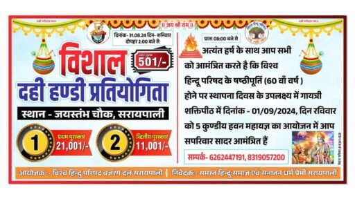 Home/सरायपाली/सरायपाली: विशाल दही हण्डी प्रतियोगिता का आयोजन सरायपाली सरायपाली: विशाल दही हण्डी प्रतियोगिता का आयोजन काका खबरीलालAugust 25, 2024 1,386 Less than a minute Related Articles सरायपाली:लोहे के राड से मारपीट February 12, 2026 AD#1 Tagsसरायपाली: विशाल दही हण्डी प्रतियोगिता का आयोजन काका खबरीलालAugust 25, 2024 1,386 Less than a minute Facebook Twitter WhatsApp Telegram Print