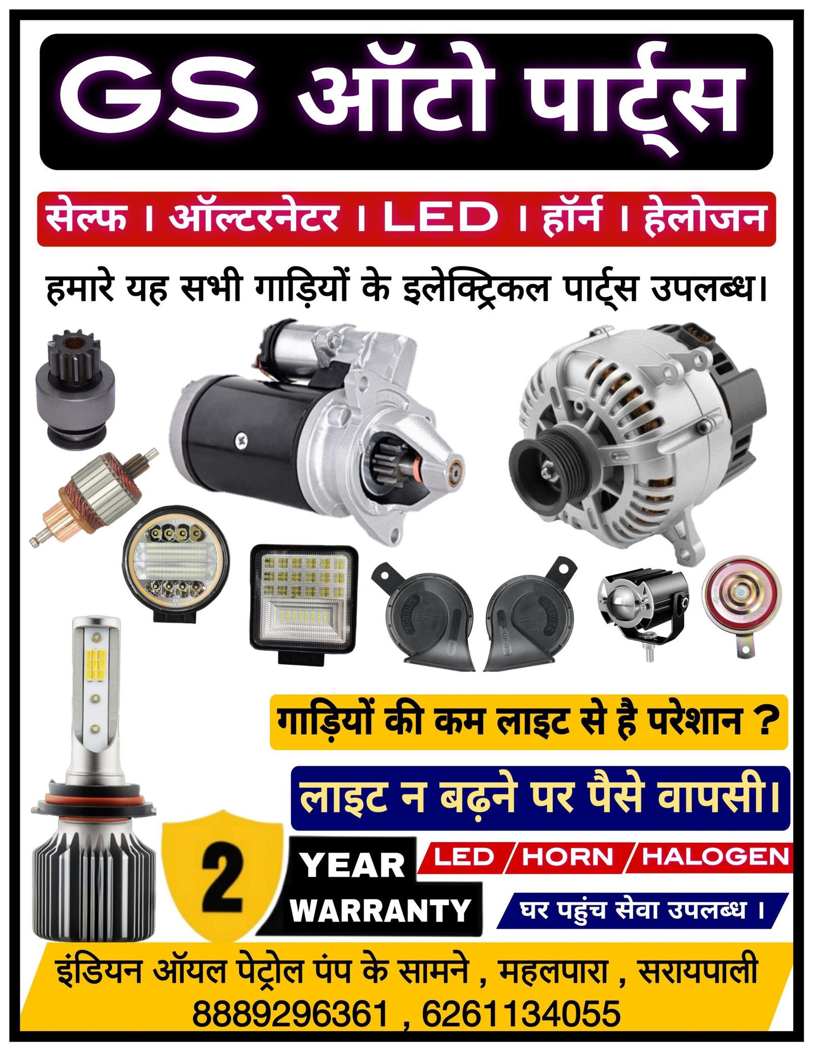 सरायपाली:Gs आंटो पार्ट्स सभी गाडियों के इलेक्ट्रिकल पार्ट्स उपलब्ध घर पहुंच सेवा उपलब्ध