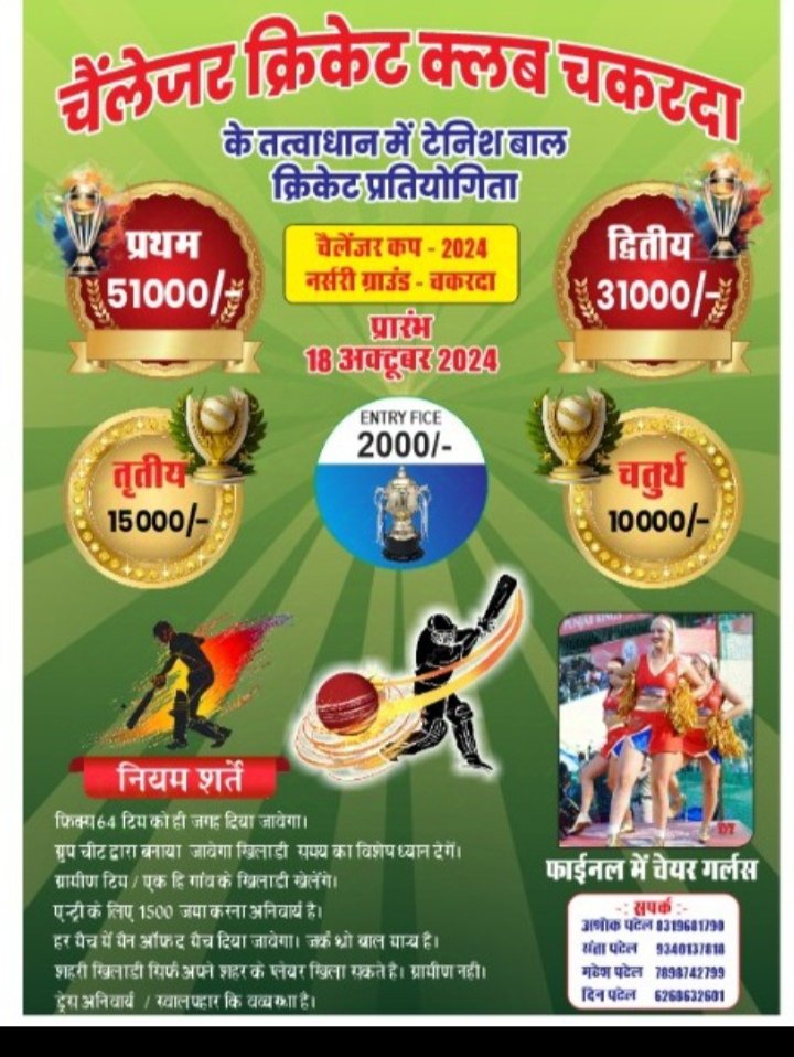 Home/सरायपाली/चैलेंजर्स क्रिकेट क्लब द्वारा टेनिस बाल क्रिकेट प्रतियोगिता 18 से सरायपाली चैलेंजर्स क्रिकेट क्लब द्वारा टेनिस बाल क्रिकेट प्रतियोगिता 18 से काका खबरीलालOctober 8, 2024 1,641 Less than a minute Related Articles छूईहा (छूईपाली) में सजेगी नृत्य की महफिल: भव्य डी.जे. डांस प्रतियोगिता का होगा आयोजन, ठाकुरदेव विवाह महोत्सव के उपलक्ष्य में 7 मार्च को बिखरेगा कला का जादू March 6, 2026 AD#1 Tagsचैलेंजर्स क्रिकेट क्लब द्वारा टेनिस बाल क्रिकेट प्रतियोगिता 18 से काका खबरीलालOctober 8, 2024 1,641 Less than a minute Facebook Twitter WhatsApp Telegram Print