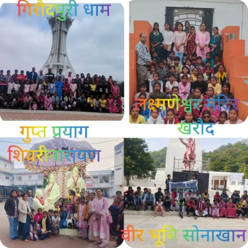 जिसमें प्रमुख रूप से गिरौदपुरी धाम,तपोभूमि छातापहाड़ महाराजी,वीरभूमि सोनाखान,गुप्त प्रयाग शिवरीनारायण और छग का काशी खरौद का भ्रमण किया।सर्वप्रथम बाबा गुरुघासीदास के जन्मस्थली गिरौदपुरी में मंदिर,अमरकुंड और जैतखंभ का दर्शन किए,तत्पश्चात बाबा के तपस्थली छातापहाड़ महाराजी और पंचकुंड का दर्शन किया।छत्तीसगढ़ के प्रथम शहीद वीरनारायण सिंह की जन्मस्थली सोनाखान में शहीद स्मारक और संग्रहालय के दर्शन कर बच्चों ने गार्डन में झूले का लुप्त उठाए।छत्तीसगढ़ के काशी के नाम से प्रसिद्ध खरौद में छठी शताब्दी में निर्मित लक्ष्मणेश्वर मंदिर का दर्शन किया गया,कहा जाता है कि इस मंदिर के शिवलिंग में लाखों छिद्र हैं,जिसका एक छिद्र पाताल तक जाती है और एक छिद्र में हमेशा जल भरा रहता है।इस मंदिर में सवा लाख चावल चढ़ाने की मान्यता है।अंत में छत्तीसगढ़ के गुप्त प्रयाग शिवरीनारायण में मठ,शबरी माता मंदिर,राम मंदिर,गौशाला के साथ मंदिर प्रांगण में स्थित चमत्कारी बरगद पेड़ का दर्शन कराया गया।