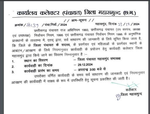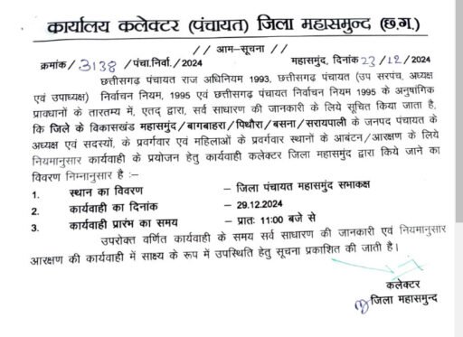 महासमुंद:जिले के जनपद सदस्य , जिला पंचायत सदस्य, सरपंच एवं पचों के आरक्षण की तिथि तय जानिए डिटेल्स