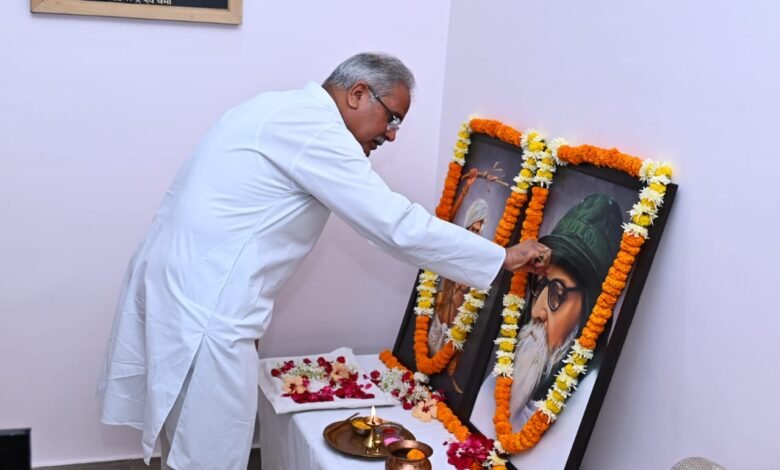 मुख्यमंत्री भूपेश बघेल ने आज यहाँ अपने निवास कार्यालय में महान आदिवासी जननेता और स्वतंत्रता संग्राम सेनानी बिरसमुण्डा की जयंती एवँ प्रसिद्ध गांधीवादी नेता तथा भूदान आंदोलन के सूत्रधार आचार्य विनोबा भावे की पुण्यतिथि पर उनके चित्र पर श्रद्धा सुमन अर्पित कर उन्हें नमन किया ।