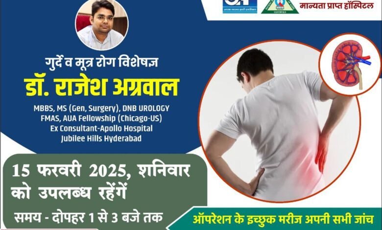 काकाखबरीलाल@सरायपाली। गुर्दे व मूत्र रोग विशेषज्ञ डॉ राजेश अग्रवाल आगामी 15 फरवरी दिन शनिवार को सरायपाली के ओम हॉस्पिटल में उपस्थित रहेंगे। गुर्दे ,पेशाब मूत्राशय संबंधित सभी प्रकार के उपचार के लिए अभी संपर्क करें।
