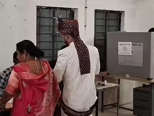 यहां बारात निकलने से पहले पोलिंग बूथ पहुंचकर दूल्हे ने वोट डाला