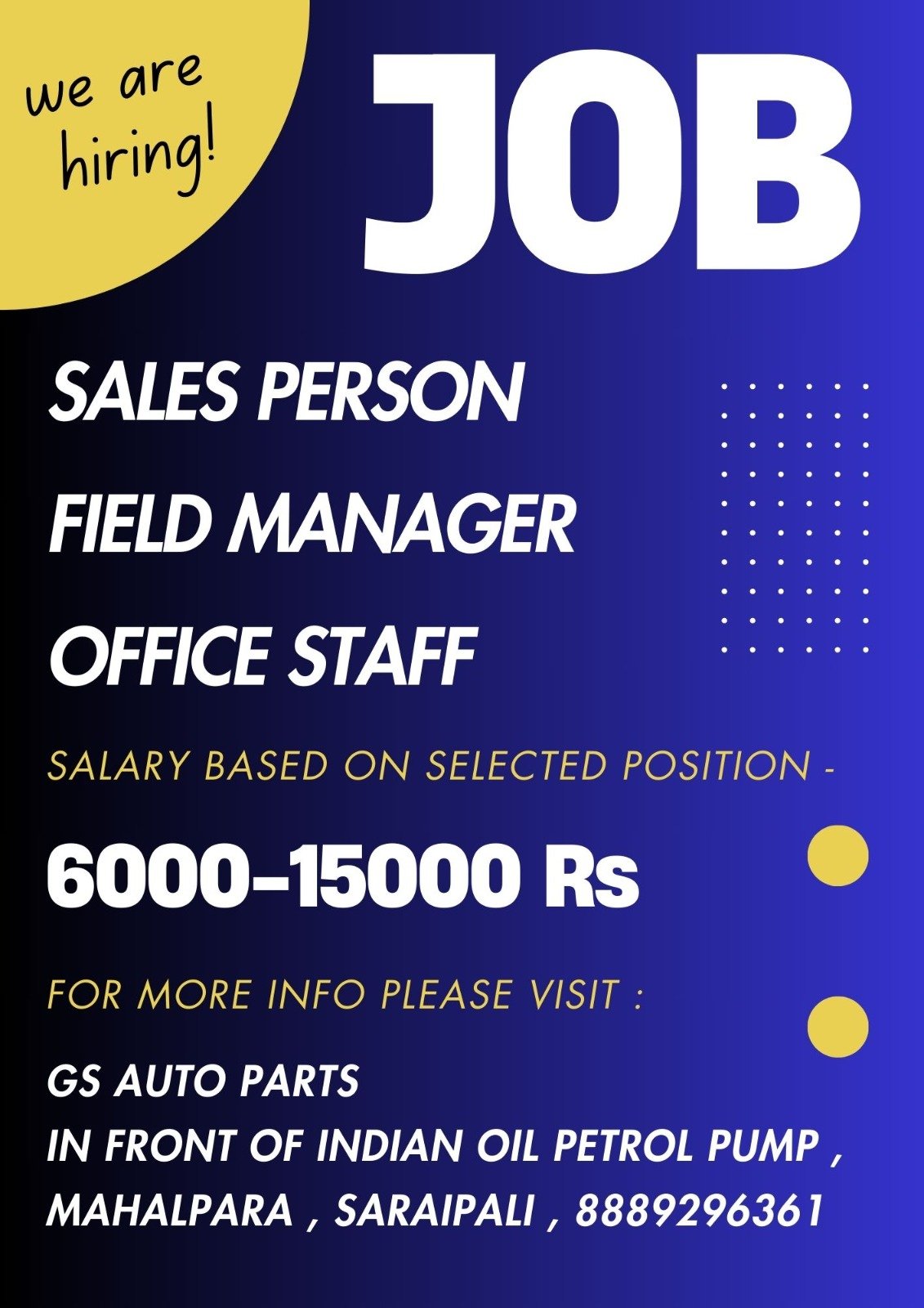 जाॅब: SALES PERSON FIELD MANAGER OFFICE STAFF की आवश्यकता है