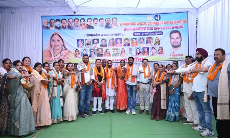 इसके पूर्व विधायक डा संपत अग्रवाल के जनपद परिसर में पहुचते ही खूब आतिसबाज़ी की गई बाजे गाजे के साथ उन्हें फूल मालाओं से लाद दिया गया भाजपा कार्यकर्ताओं का उत्साह चरम पर था और विधायक अपने स्वागत से अभिभूत दिख रहे थे जनपद के मुख्य कार्यपालन अधिकारी चंद्रप्रकाश मनहर ने नवनिर्वाचित अध्यक्ष उषा पुरषोत्तम घृतलहरे उपाध्यक्ष ब्रह्मानंद पटेल व सभी निर्वाचित जनपद सदस्यों को निर्धारित प्रारूप में सपथ ग्रहण कराया। सपथ ग्रहण के दौरान संख ध्वनि एवं वैदिक मंत्रोच्चार से कार्यक्रम स्थल गूंज रहा था निर्वाचित जनपद अध्यक्ष उपाध्यक्ष व जनपद सदस्य सैलेंद्री लक्ष्मीलाल ध्रुव, संजुलता सुशीला भोई, सुमन जितेंद सिंहा ,पुन्नी विष्णु साहू ,नारायण लाल ध्रुव, राधा टिकेलाल पटेल ,दीपक भानुप्रताप दीवान ,जयंती दीवान ,दिनेश अग्रवाल, हेमलता केशव साहू ,कमलजीत छाबड़ा,अजय अग्रवाल,मथामणि बढ़ई,आशा हेमंत ठाकुर, भारतीय अग्रवाल, सरोज गणेश पटेल ,पुरर्षोत्तम घृतलहरे, सुशीला अम्बू पटेल ,विमला बेहरा, गंगा शिव अत्री, डिलेश्वरी निराकार प्रधान ,श्यामलाल बहावल को विधायक डा संपत अग्रवाल ने शाल और श्री फल भेटकर सम्मानित किया।कार्यक्रम का संचालन तृतीय वर्ग कर्मचारी संघ अध्यक्ष उमेश दीक्षित ने किया ।
