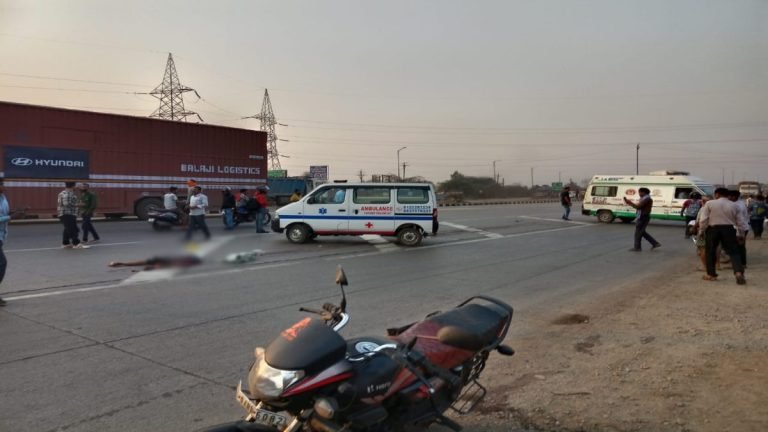 सांकरा-सिमगा सिक्स लाइन पर आज सुबह एक दर्दनाक सड़क हादसा हो गया, जिसमें एक बाइक सवार की मौके पर ही मौत हो गई, जबकि पीछे बैठी महिला गंभीर रूप से घायल हो गई है. हादसा इतना भयावह था कि बाइक सवार का शरीर दो भागों में बंट गया और सड़क खून से सन गई.जानकारी के अनुसार, यह घटना टाटीबंध ब्रिज के पास हुई, जब एक तेज रफ्तार ट्रक ने बाइक को जोरदार टक्कर मार दी और बाइक सवार को काफी दूर तक घसीटते हुए ले गया. इस भीषण हादसे में बाइक चला रहे व्यक्ति की मौके पर ही मौत हो गई, जबकि बाइक पर सवार महिला गंभीर रूप से घायल हो गई. घायल महिला को इलाज के लिए अस्पताल में भर्ती कराया गया है. घटना की सूचना मिलते ही पुलिस मौके पर पहुंची और मर्ग कायम कर जांच में जुट गई है.