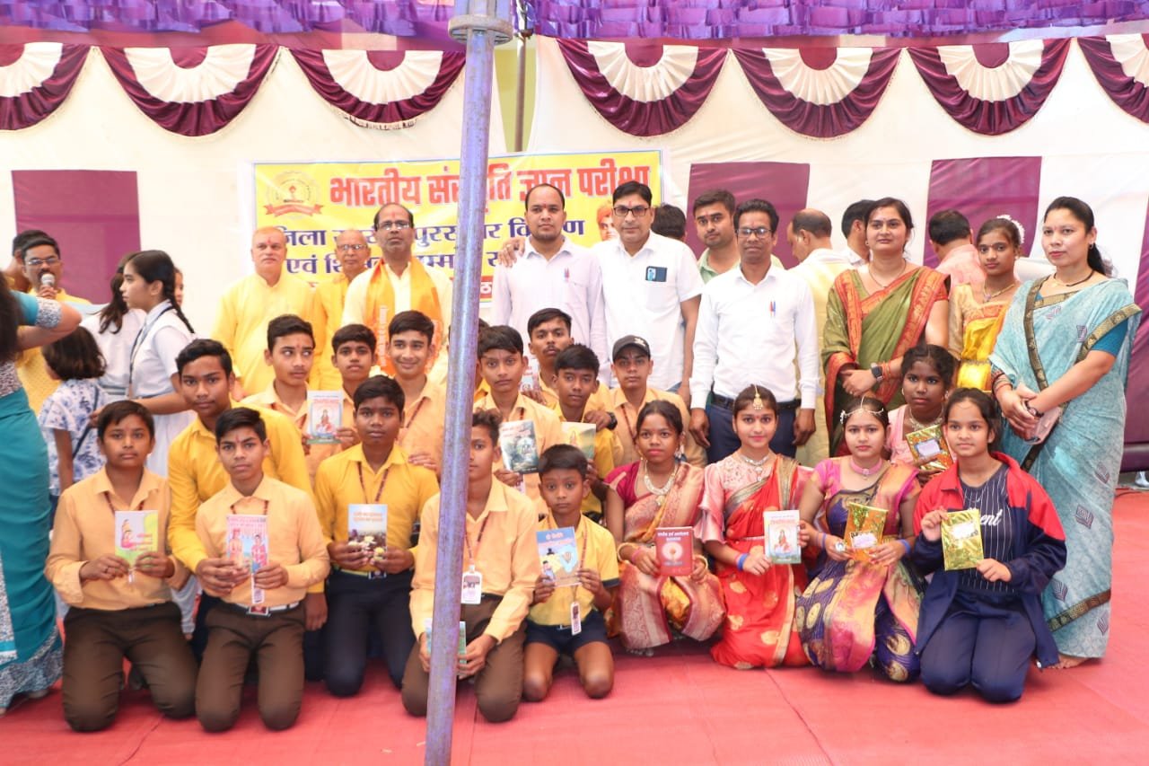 सरायपाली। विगत दिनों भारतीय संस्कृति ज्ञान परीक्षा जिला स्तरीय पुरस्कार वितरण एवं शिक्षक सम्मान समारोह का आयोजन गायत्री शक्तिपीठ सरायपाली द्वारा किया गया।कार्यक्रम में गोपनाथ आश्रम विद्या मंदिर हा.से.स्कूल जोगनीपाली की कक्षा 7 वीं की छात्रा गरिमा दास जिन्होने 100में 90 अंक अर्जित किया था,उन्हें मोमेंटो,पुरस्कार राशि तथा आकर्षक प्रशस्ति पत्र से सम्मानित किया गया।इसी दरमियान सांस्कृतिक कार्यक्रम में संचालक जन्मजय नायक के निर्देशन में विद्यालय के छात्र-छात्राओं दूवारा अद्भुत नृत्य की प्रस्तुति पर उन्हें आध्यात्म से जुड़ी विविध धार्मिक किताबें प्रदान कर सम्मानित किया गया।इस सम्मान के लिए गोपनाथ विद्यालय परिवार ने आयोजक गायत्री शक्तिपीठ सरायपाली को धन्यवाद ज्ञापित किया है।