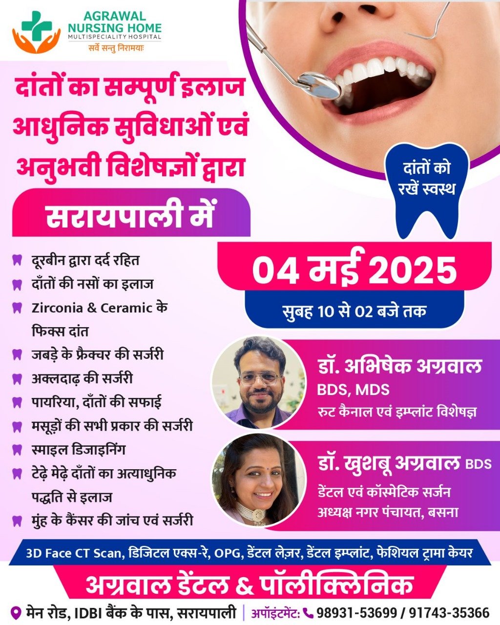 Home/छत्तीसगढ़/अग्रवाल डेंटल एंड पॉलीक्लिनिक सरायपाली: दांतों का संपूर्ण ईलाज आधुनिक सुविधाओं एवं अनुभवी विशेषज्ञों द्वारा छत्तीसगढ़ अग्रवाल डेंटल एंड पॉलीक्लिनिक सरायपाली: दांतों का संपूर्ण ईलाज आधुनिक सुविधाओं एवं अनुभवी विशेषज्ञों द्वारा काका खबरीलालMay 3, 2025 2,132 Less than a minute Related Articles पुष्पा ने इस… समूह से जुड़ कर बदली जीवन की दिशा March 2, 2026 AD#1 Tagsअग्रवाल डेंटल एंड पॉलीक्लिनिक सरायपाली: दांतों का संपूर्ण ईलाज आधुनिक सुविधाओं एवं अनुभवी विशेषज्ञों द्वारा काका खबरीलालMay 3, 2025 2,132 Less than a minute Facebook Twitter WhatsApp Telegram Print