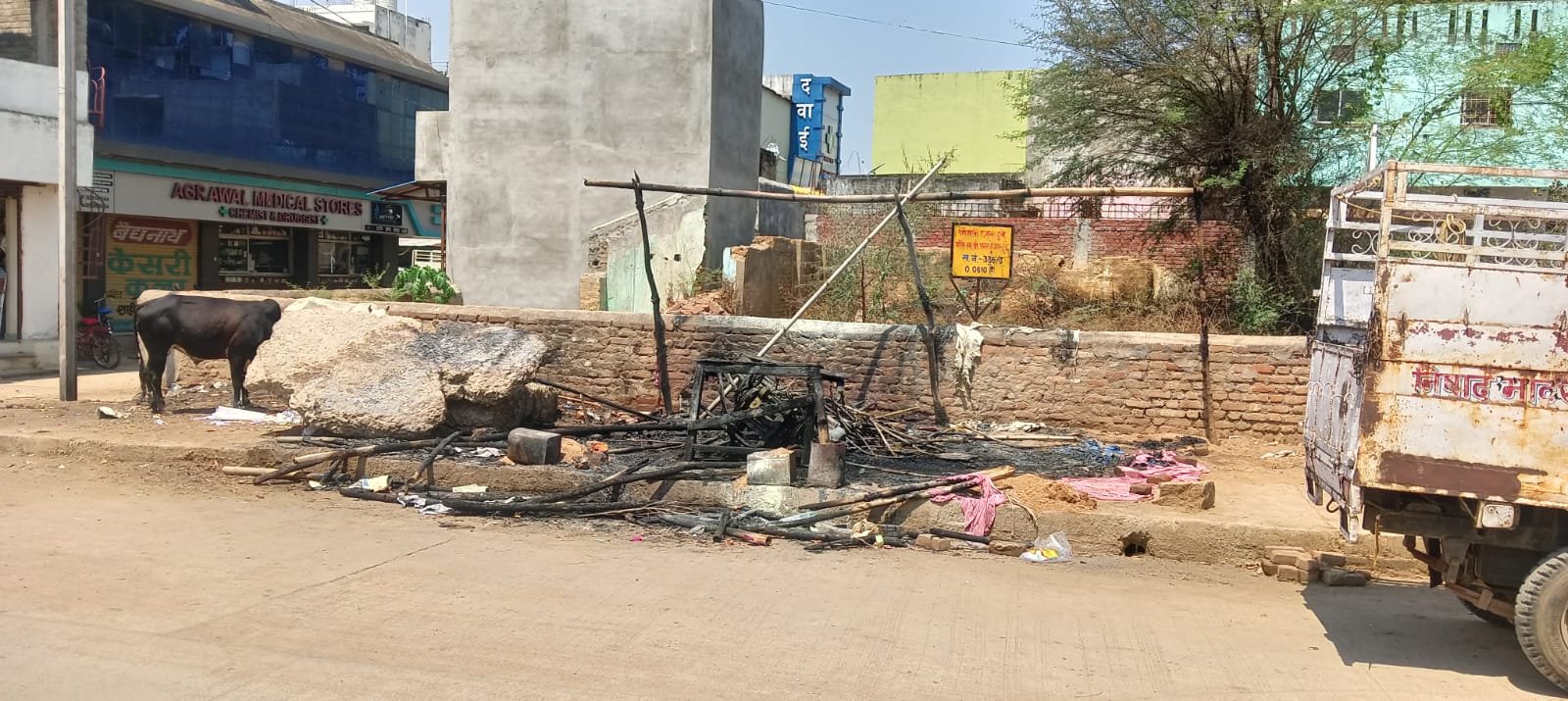 नंदकिशोर अग्रवाल,काकाखबरीलाल@ पिथौरा। स्थानीय बस स्टैंड के पास बुधवार दोपहर बाद आंधी-तूफान के दौरान अचानक ही एक अस्थाई गन्ना दुकान में आग लग गई। देखते ही देखते आग की लपटो से गरीब किसान की आजीविका का एकमात्र साधन जलकर नष्ट हो गया। इस हादसे ने गरीब किसान को न केवल आर्थिक नुकसान पहुंचाया, बल्कि न्याय की आश लेकर प्रशासन के समक्ष पहुंचे किसान, प्रशासन की संवेदनहीनता को उजागर किया हैं ।बता दे घटना के समय तेज आंधी-तूफान के बीच बस स्टैंड के पास स्थित गन्ना दुकान में अचानक आग लग गई। प्रशासन को अब तक यह पता नहीं चल सका कि आग लगने का सटीक कारण क्या था। अनुमान लगाया जा रहा है कि बिजली के तारों से निकली चिंगारी या तूफान के कारण कोई अन्य तकनीकी खराबी इसका कारण हो सकती है। उस समय दुकान का संचालक अग्नि साहू मौके पर मौजूद नहीं था। दोपहर बाद अचानक आग की लपटों ने देखते ही देखते दुकान को अपनी चपेट में ले लिया, जिससे वहां रखे मशीन, पाटा, मोटर सहित करीब 50,000 रुपये की संपत्ति जलकर राख हो गई।