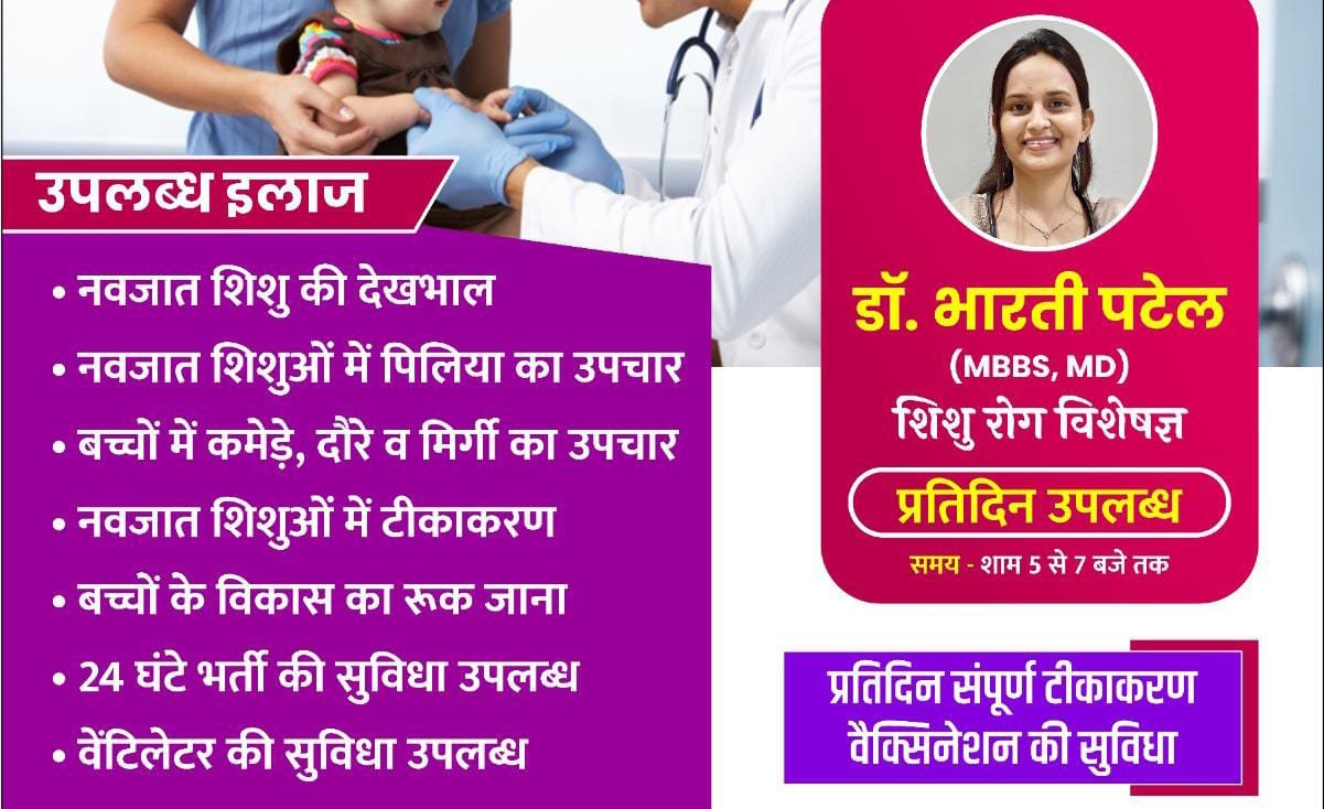 ओम हॉस्पिटल@सरायपाली। समस्त अभिभावकों एवं नागरिकों को सूचित किया जाता है कि आज से ओम हॉस्पिटल, सरायपाली में डॉ. भारती पटेल (MBBS, MD – बाल रोग) प्रतिदिन सायं 5:00 बजे से 7:00 बजे तक उपलब्ध रहेंगी।