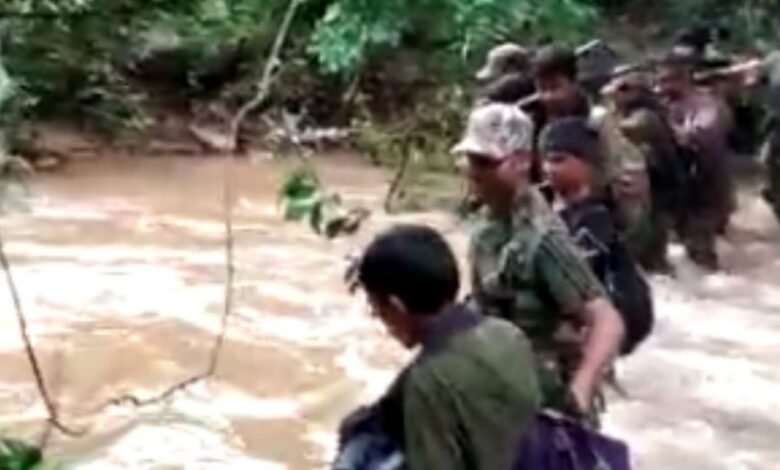 सुरक्षाबल के जवानों का उफनती नदी और बाढ़ के बीच चल रहा आपरेशन