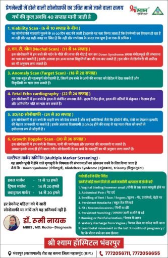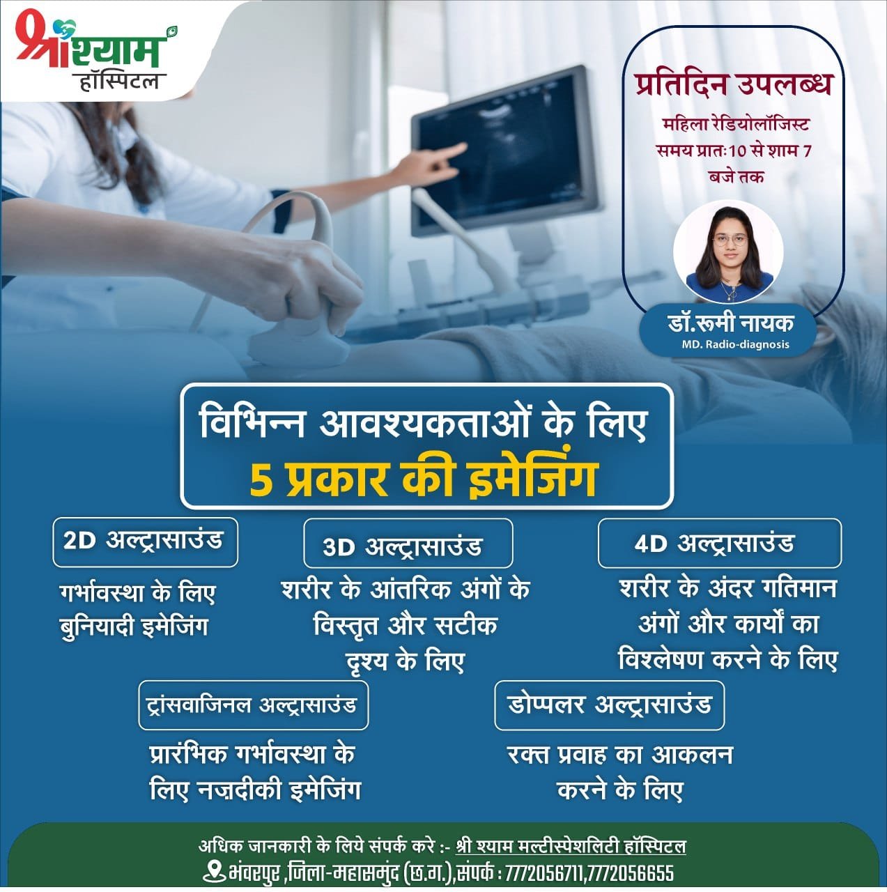 स्वास्थ्य सेवाएं@ भंवरपुर। श्री श्याम मल्टीस्पेशलिटी हॉस्पिटल भंवरपुर में महिला रेडियोलॉजिस्ट डॉ. रूमी नायक प्रतिदिन सुबह 10 बजे से शाम 05 बजे तक उपलब्ध हैं। अब आपके नगर भंवरपुर में रायपुर जैसी सुविधा उपलब्ध है हर प्रकार के ईलाज एंव चिकित्सकीय सुविधा उपलब्ध हैं।