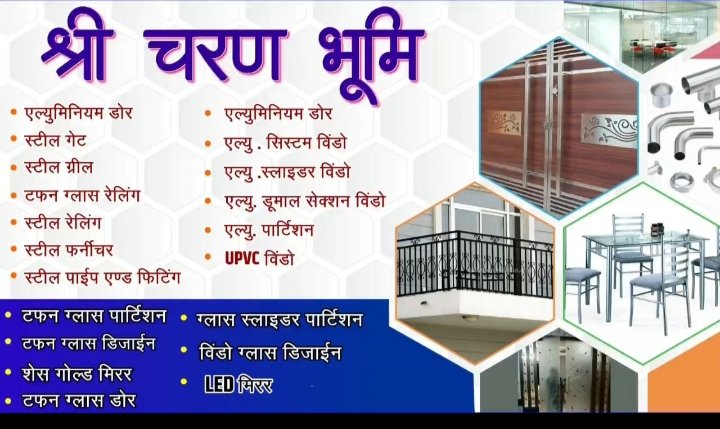 सरायपाली@ विज्ञापन। हमारे यहां डुमाल सेक्शन विंडो. सिस्टम विंडो.एल्युमीनियम स्लाइडर विंडो.ओपनेवल विंडो. पार्टीशन. पार्टीशन डोर. वेंटीलेशन फिक्स. जाली फिक्स . एक्सास्ट. बाथरूम डोर. सभी कलर मे वुडेन. मार्बल. और अनोडाईज़ के सभी वैराइटी उपलब्ध है.