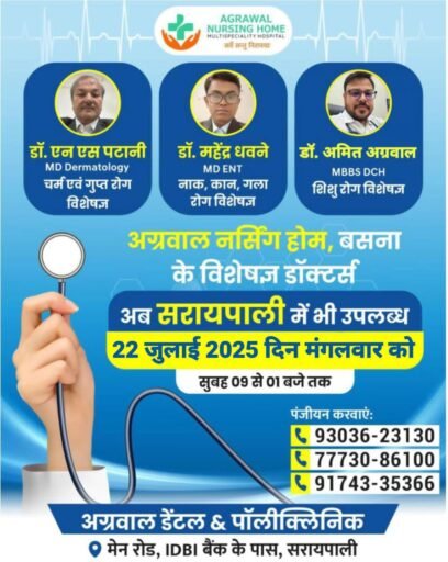 Home/सरायपाली/आज सरायपाली में उपलब्ध रहेंगे अग्रवाल नर्सिंग होम के विशेषज्ञ डाक्टर की टीम सरायपाली आज सरायपाली में उपलब्ध रहेंगे अग्रवाल नर्सिंग होम के विशेषज्ञ डाक्टर की टीम काका खबरीलालJuly 22, 2025 2,103 Less than a minute Related Articles सरायपाली: खेत में मिला बच्चे का शव पुलिस तफ्तीश में जुटी March 5, 2026 AD#1 Tagsआज सरायपाली में उपलब्ध रहेंगे नैत्र रोग काका खबरीलालJuly 22, 2025 2,103 Less than a minute Facebook Twitter WhatsApp Telegram Print