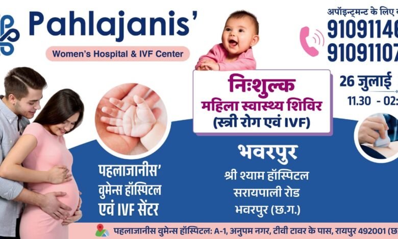 पहलाजानीस IVF एवं टेस्ट ट्यूब बेबी सेंटर के सुप्रसिद्ध आईवीएफ़ टीम की उपस्थित में आगामी 13 नवंबर को विशेष शिविर का आयोजन किया जा रहा है जहां पर आकर निःसंतान दंपत्तियां संतान सुख के सुनहरे मौका का लाभ ले सकते हैं।
