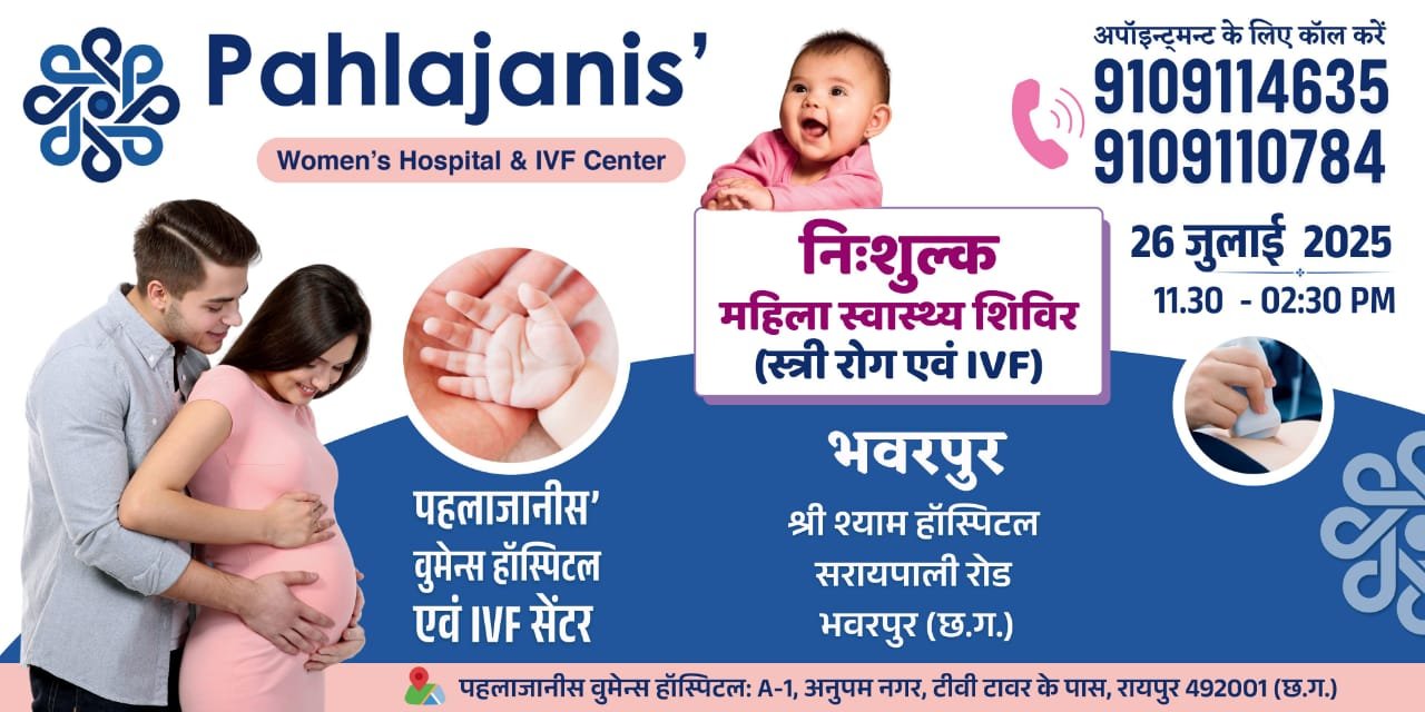 स्वास्थ्य सेवाएं@भंवरपुर। आगामी 26 जुलाई को जिले के बसना ब्लॉक अंतर्गत भंवरपुर के श्री श्याम हॉस्पिटल में निःसंतान्त स्वास्थ्य शिविर का आयोजन श्री श्याम होस्पिटल में होने जा रहा है, जहां पर क्षेत्र के निःसंतान्त दम्पति आकर उचित सलाह प्राप्त कर सकते हैं। निःसंतान्त दम्पतियों के लिए सुनहरा अवसर लेकर आएं है आपके शहर भंवरपुर में पहलाजानीस IVF एवं टेस्ट ट्यूब बेबी सेंटर के सुप्रसिद्ध आईवीएफ़ टीम से निःशुल्क परामर्श ले सकते हैं।