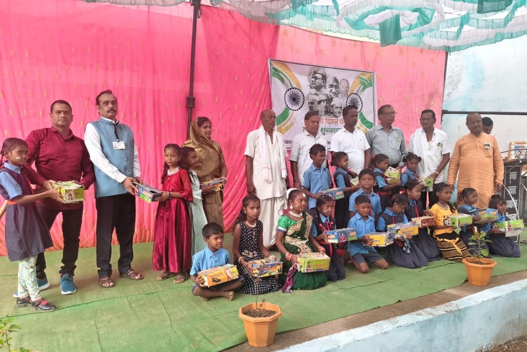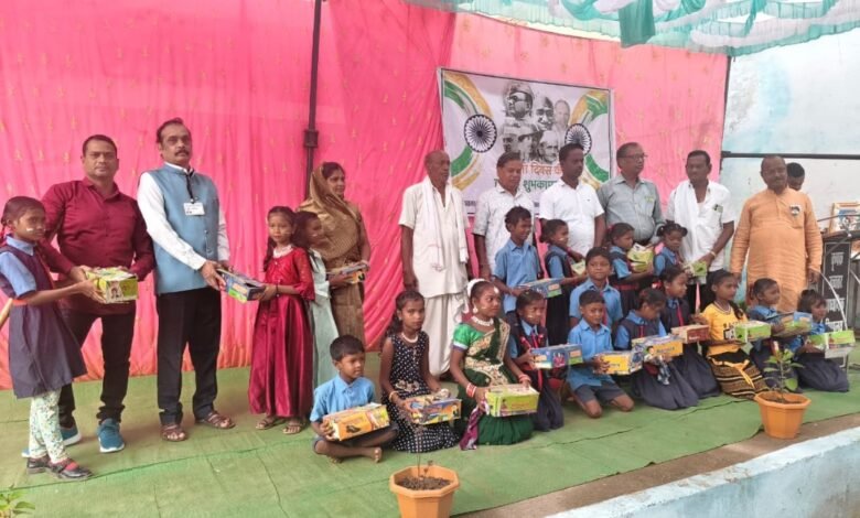 सरायपाली। स्वतंत्रता दिवस के अवसर पर स्वर्गीय चमार सिंग़ पटेल की स्मृति में उनके सुपुत्र परीक्षित पटेल एवं दीपक कृषि सेवा केंद्र एवं शनि ट्रेडर्स के प्रोपराइटर जन्मजय पटेल, जयलाल पटेल के द्वारा शासकीय प्राथमिक शाला पाटसेंद्री के कक्षा पहली से पांचवी तक के बच्चों को जूता प्रदान किया गया। जूता मिलने पर शासकीय उच्च प्राथमिक शाला पाटसेंद्री के बच्चों के खुशी का ठिकाना नहीं रहा। इस अवसर में ग्राम पंचायत पाटसेंद्री के सरपंच तरुण पटेल महिला एवं बाल विकास विभाग, सभापति उषा लाल कुमार पटेल, कृपा सिंधु पटेल गांव के मालगुजार, खेमराज पटेल, शिवनारायण चौधरी, लाल कुमार पटेल ,साखीराम पटेल प्राचार्य, चंद्रभानु पटेल प्रधान पाठक, चंद्रशेखर पटेल प्रधान पाठक एवं समस्त स्टाफ उपस्थित थे ।