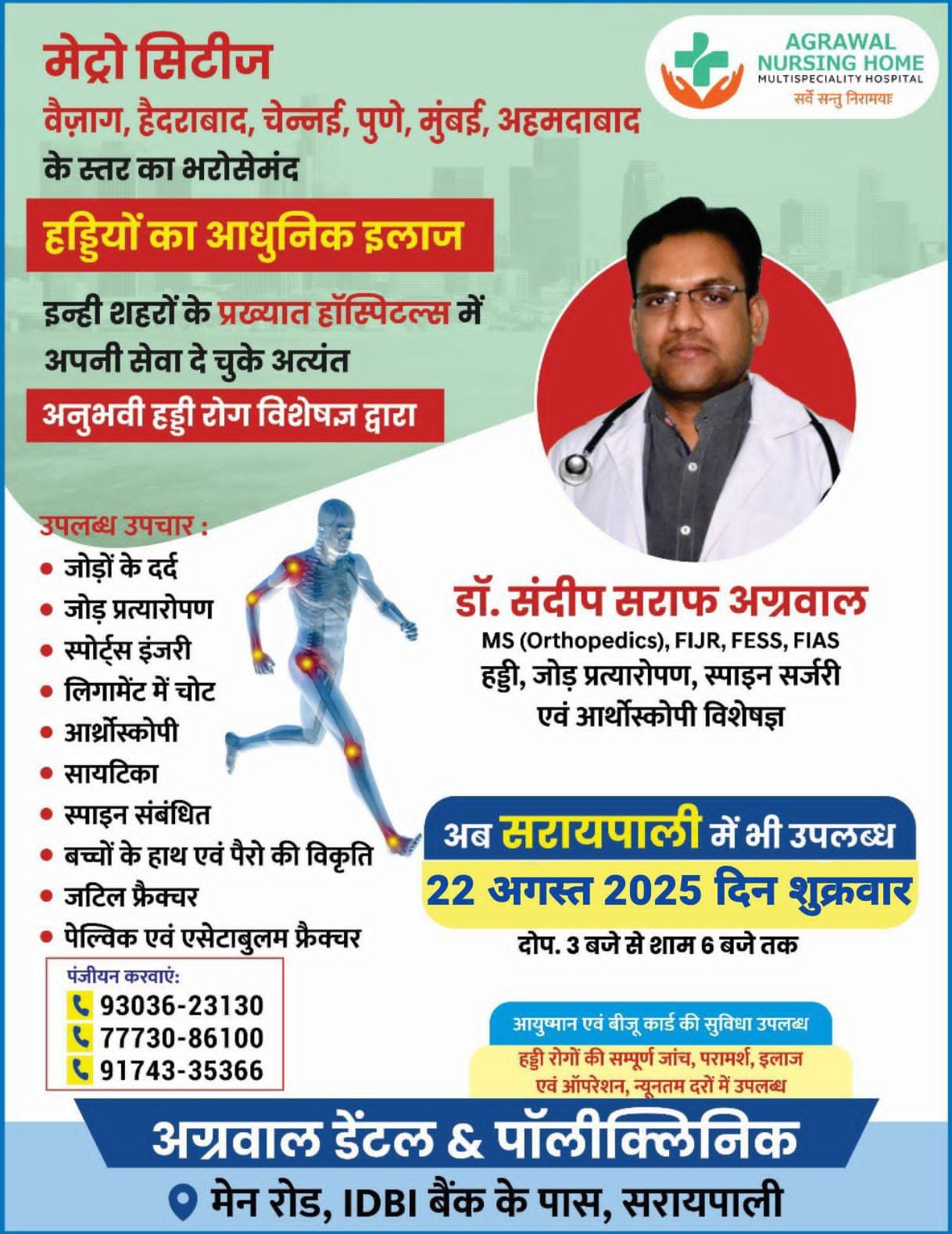 Home/छत्तीसगढ़/सरायपाली में आज उपलब्ध रहेंगे डाक्टर संदीप सराफ अग्रवाल हड्डी जोड़ प्रत्यारोपण आर्थोस्कोपिक विशेषज्ञ छत्तीसगढ़ सरायपाली में आज उपलब्ध रहेंगे डाक्टर संदीप सराफ अग्रवाल हड्डी जोड़ प्रत्यारोपण आर्थोस्कोपिक विशेषज्ञ काका खबरीलालAugust 22, 2025 2,102 Less than a minute Related Articles शुभा नर्सिंग होम में 12 अप्रैल को उपलब्ध रहेंगे हड्डी जोड़ प्रत्यारोपण स्पेशलिस्ट डॉक्टर आकाश पंडा March 30, 2026 AD#1 Tagsसरायपाली में आज उपलब्ध रहेंगे डाक्टर संदीप सराफ अग्रवाल हड्डी जोड़ प्रत्यारोपण आर्थोस्कोपिक विशेषज्ञ काका खबरीलालAugust 22, 2025 2,102 Less than a minute Facebook Twitter WhatsApp Telegram Print