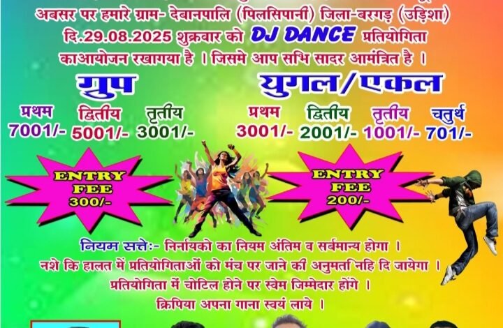 बसना: देवानपालि ( पिलसीपानी) में डीजे डांस प्रतियोगिता 29 को