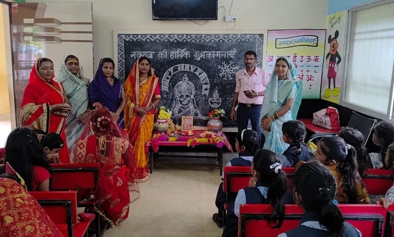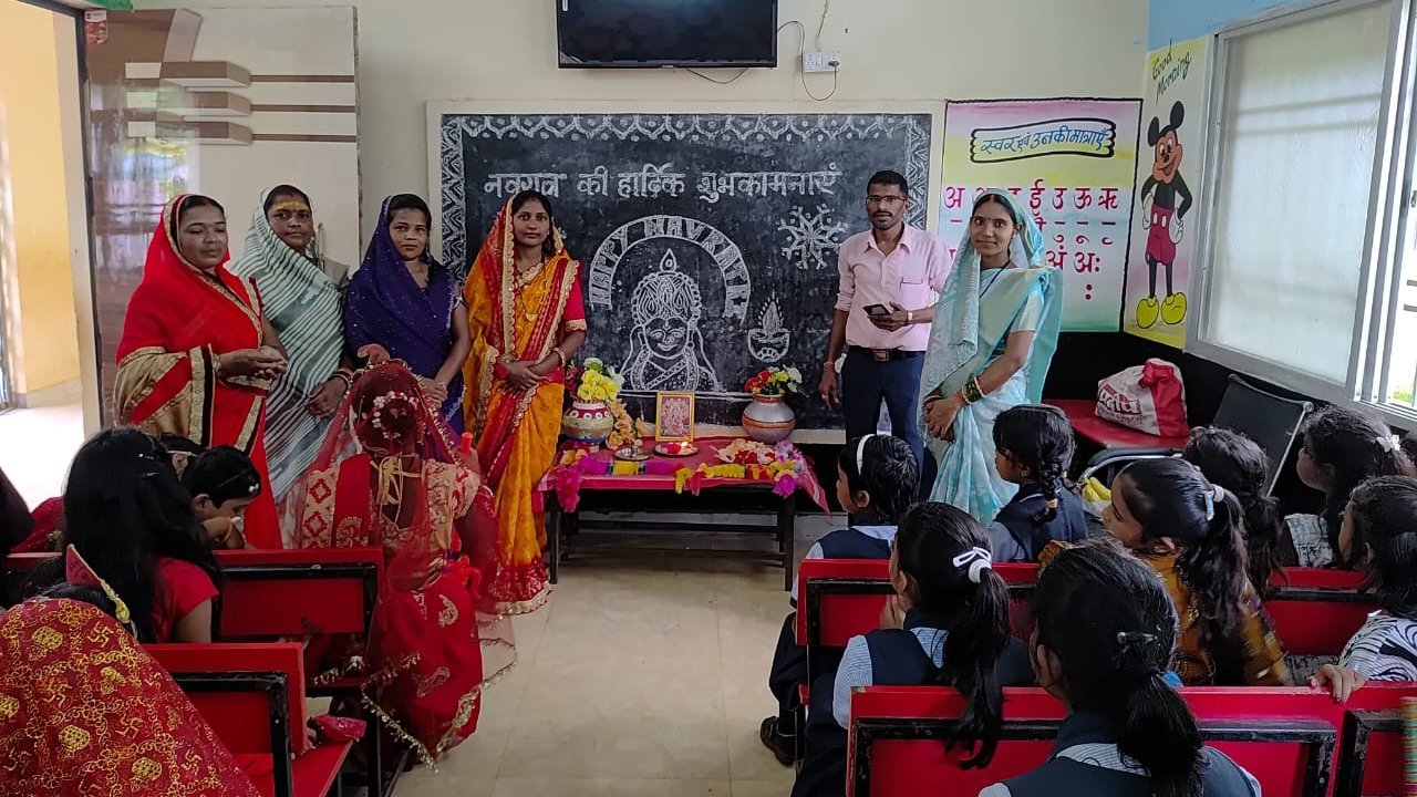 सरायपाली में जीपीईएमएस (इग्नाइट) में बैग लैस डे पर नवरात्र उत्सव का कार्यक्रम